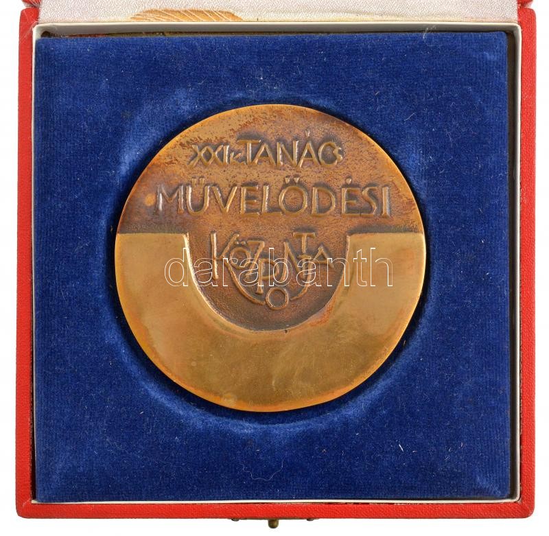 Leírás: H. Varga Ilona (1927-1989) DN "XXI. k. Tanács Művelődési Központja" Br emlékérem eredeti dísztokban (82mm) T:2 kis patina, ph, a dobozon foltok