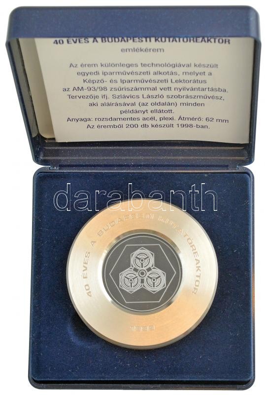 Leírás: Ifj. Szlávics László (1959-) 1998-1999."40 éves a Budapesti Kutatóreaktor" rozsdamentes acél, plexi emlékérem tanúsítvánnyal, díszdobozban (62mm) T:1