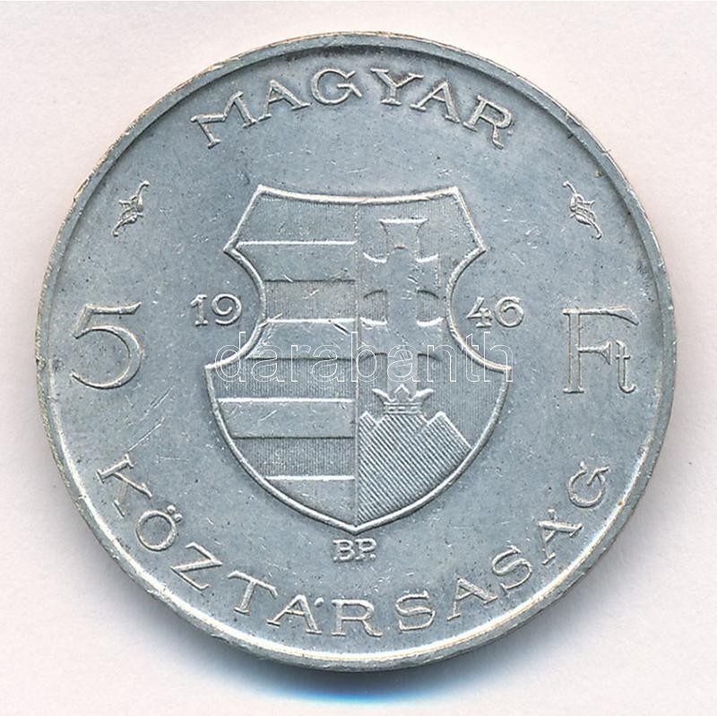 1946. 5Ft Ag "vastag Kossuth" fordított peremirat T:2 kis ph. Adamo F8 https://www.darabanth.com/hu/413-Gyorsarveres/413.0/Numizmatika/Magyar-es-magyar-verdejelu-fem-es-ezustpenzek~1500008/1946-5Ft-Ag-vastag-Kossuth-forditott-peremirat-T2-kis-ph-Adamo-F8~II2566774