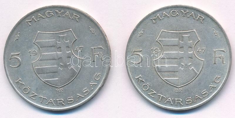 Leírás: 1947. 5Ft Ag "Kossuth" (2x) T:2-,3 patina