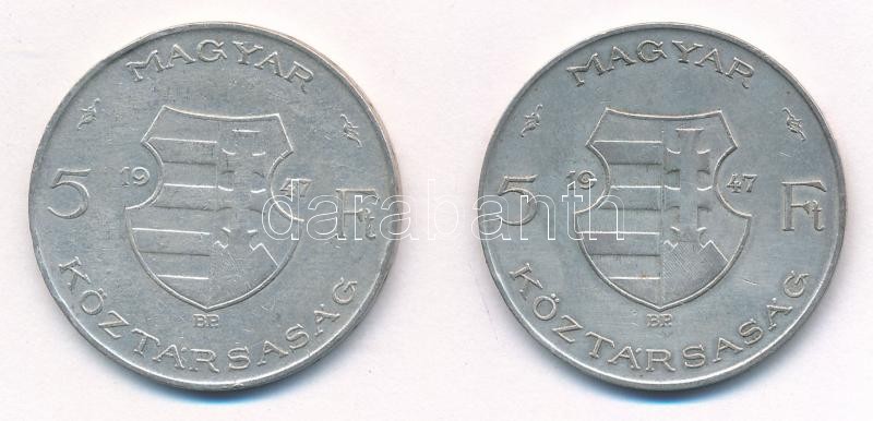 1947. 5Ft Ag "Kossuth" (2x) T:2- Adamo F8.1 https://www.darabanth.com/hu/413-Gyorsarveres/413.0/Numizmatika/Magyar-es-magyar-verdejelu-fem-es-ezustpenzek~1500008/1947-5Ft-Ag-Kossuth-2x-T2-Adamo-F81~II2576835