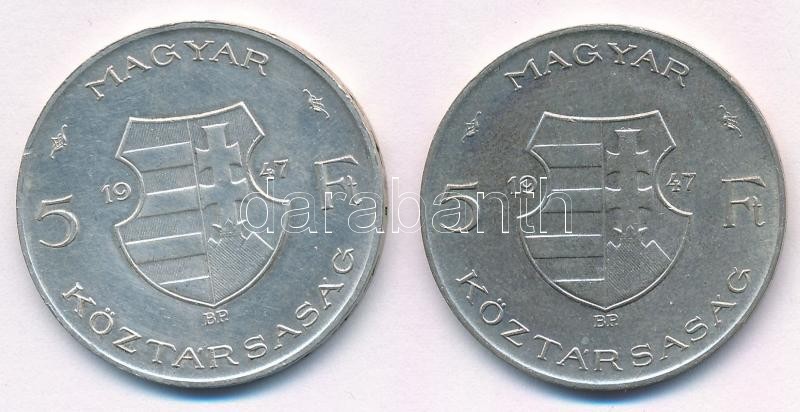 1947. 5Ft Ag "Kossuth" (2x) T:2