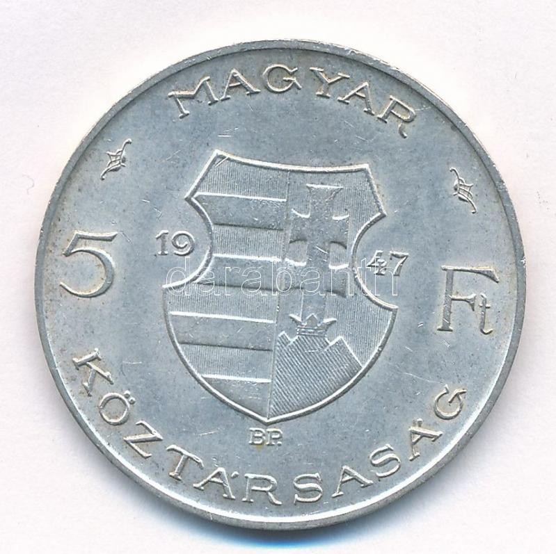 Leírás: 1947. 5Ft Ag "Kossuth" T:1- Adamo F8.1