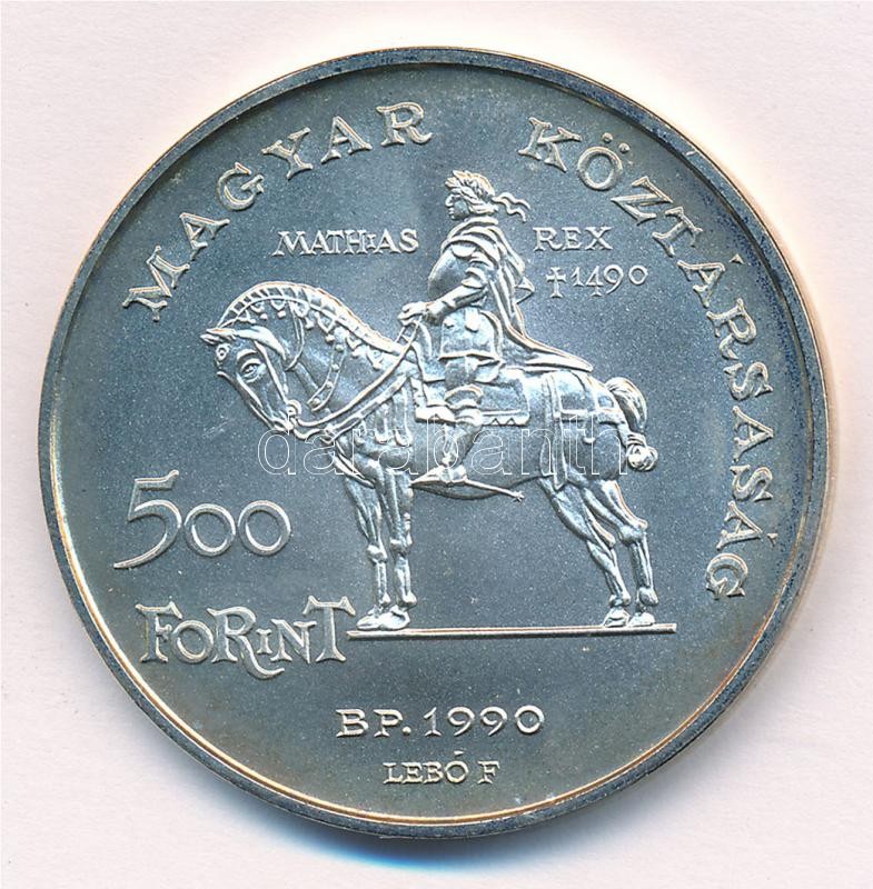 Leírás: 1990. 500Ft Ag "Mátyás király / Beatrix" kapszulában T:BU halvány patina