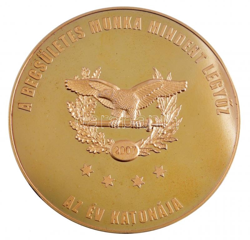 2007. "A becsületes munka mindent legyőz - Az év katonája" egyoldalas aranyozott Br plakett (80mm) T:1- (PP) ujjlenyomat, patina, karc