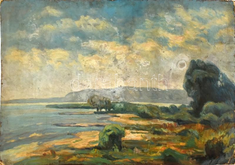 Joachim József (1897-1954): Budafoki részlet. Olaj, karton. Jelzés nélkül. Kétoldalas mű, a hátoldalán Budafoki táj. Mindkét oldalán kissé sérült. 70x50 cm