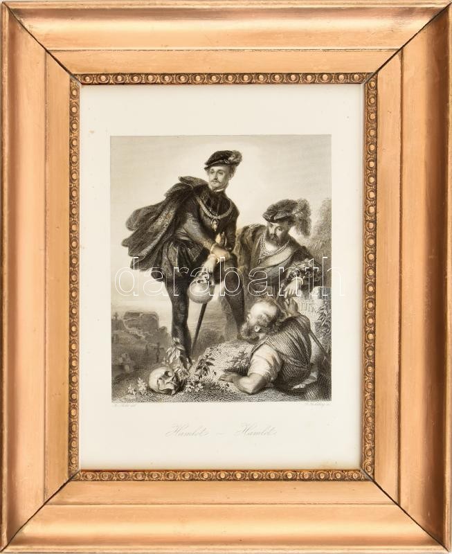 Goldberg, Georg (1830-1894) és Pecht, Friedrich (1814-1903): Hamlet. Acélmetszet, papír. Jelzett a metszeten. Üvegezett, dekoratív fakeretben. 15x12 cm