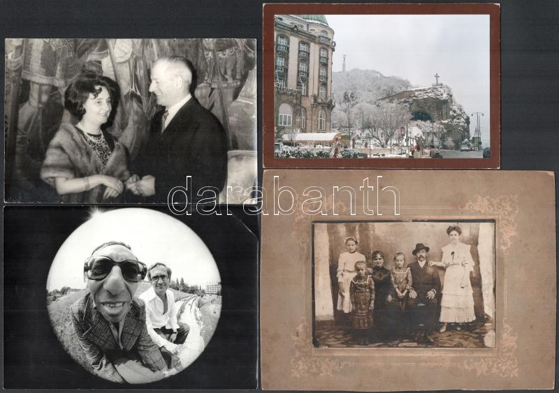 10 db vegyes, régi és modern fotó, közte keményhátú, ill. a hátoldalon feliratozott, pecséttel jelzett is, vegyes állapotban, 13x9 cm és 23x18 cm között