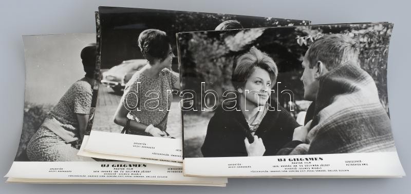 1963 Domján Edit és Darvas Iván színészek közös jelenetei az ,,Új Gilgames" című magyar filmben, 13 db vintage produkciós filmfotó, ezüstzselatinos fotópapíron, 24x30 cm