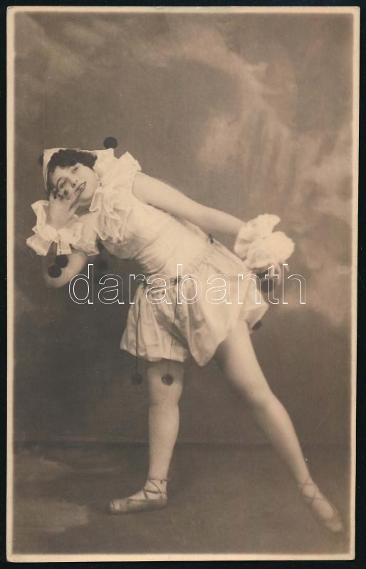 cca 1920-1930 Táncosnő jelmezben (bohóc), fotólap, hátoldalán pecsétte... https://www.darabanth.com/hu/414-Gyorsarveres/414.0/Fotomuveszet/Foto~500021/cca-1920-1930-Tancosno-jelmezben-bohoc-fotolap-hatoldalan-pecsettel-jelzett-Ryba-Geza-B~II2592049