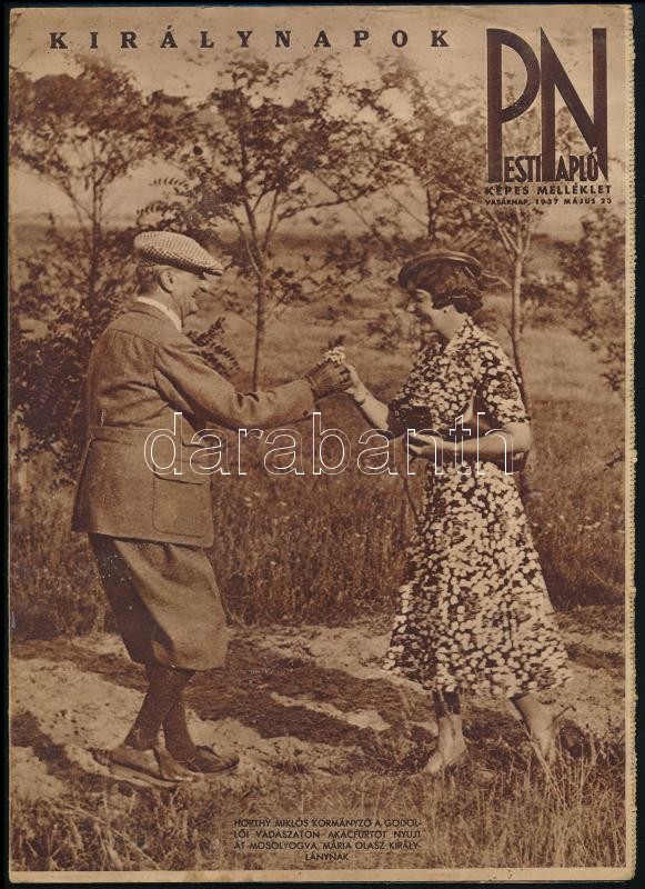 cca 1937 Horthy Miklós kormányzó beszéde Debrecenben, 1 db mai nagyítás Fekete György (1904-1990) budapesti fényképész hagyatékából (15x10 cm), + hozzáadva a Pesti Napló képes mellékletének 1937. május 23. számát, benne több Horthy fénykép illusztrációval