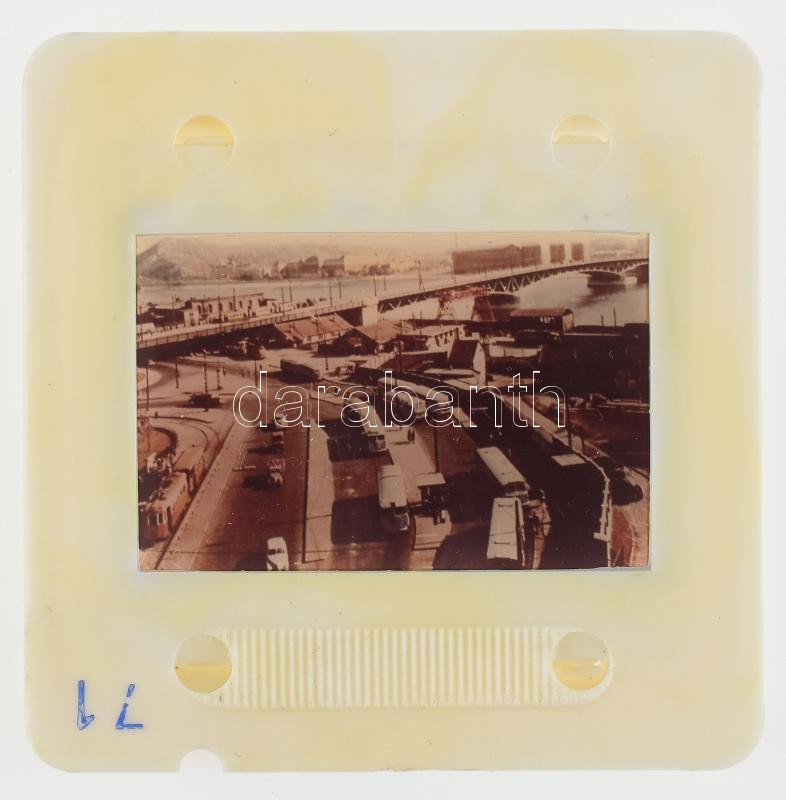 Leírás: cca 1950 Budapest, Boráros tér autóbuszokkal, villamosokkal, diapozitív, 2×3 cm