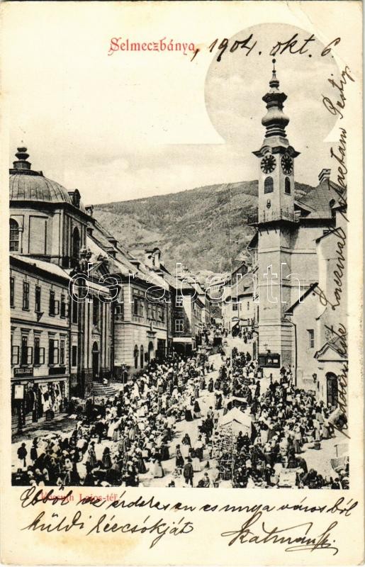 1904 Selmecbánya, Schemnitz, Banská Stiavnica; Kossuth Lajos tér, piac, Singer Ignác üzlete. Joerges Á. Özvegye és Fia kiadása / square, market, shops (EB)