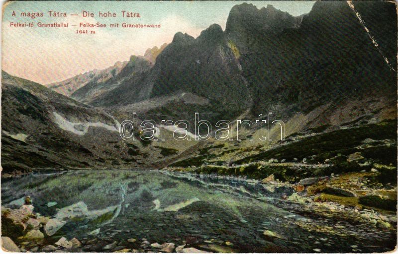 Tátra, Magas-Tátra, Vysoké Tatry; Felkai-tó Gránátfallal. Dr. Trenkler... https://www.darabanth.com/hu/414-Gyorsarveres/414.0/Kepeslapok/Felvidek~1500005/Tatra-Magas-Tatra-Vysoke-Tatry-Felkai-to-Granatfallal-Dr-Trenkler-Co-1906-Tat-16-F~II2588695