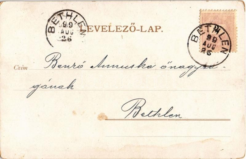 Leírás: 1899 (Vorläufer) Felednélek... Magyar folklór művészlap. Szénásy és Reimann No. 426. / Hungarian folklore art postcard (kopott sarkak / worn corners)