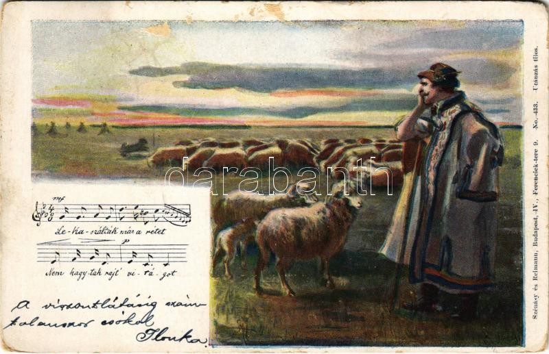 Leírás: 1900 Lekaszálták már a rétet... Magyar folklór művészlap. Szénásy és Reimann No. 433. / Hungarian folklore art postcard (kopott sarkak / worn corners)