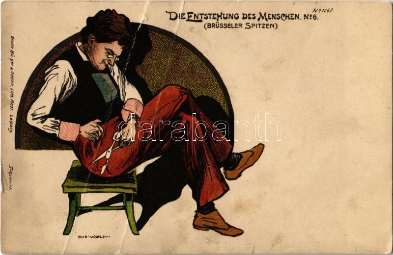 Leírás: Die Entstehung des Menschen No. 6. (Brüsseler Spitzen) Bruno Bürger & Ottilie Lith. Anst. litho s: Rud. Wolf (fa)