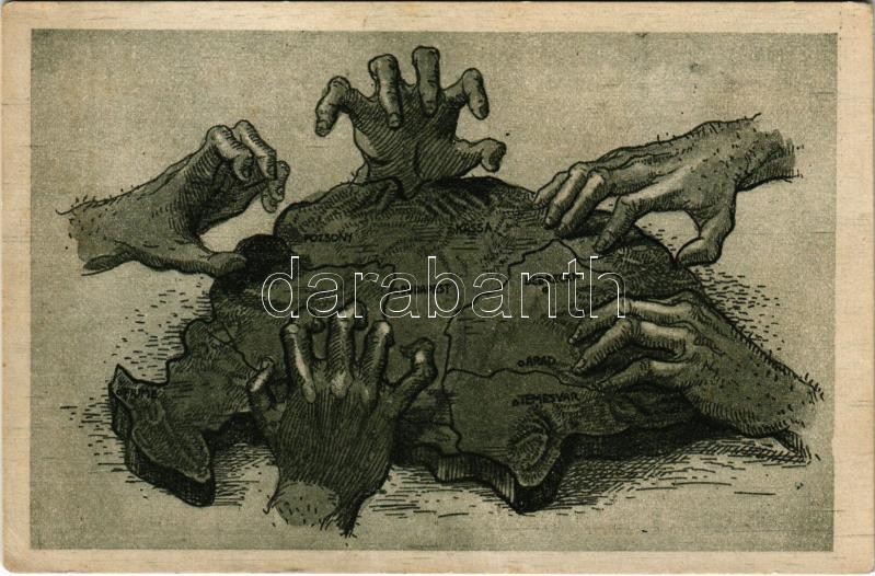 A rablók kezei. Kiadja a "Szózat" Magyarország Területi Épségének Védelmi Ligájának napilapja / "The hands of robbers" Hungarian irredenta propaganda, Trianon s: Helbing Aranka (EK)