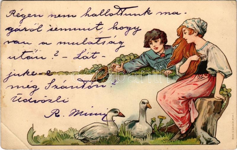 1901 Art Nouveau art postcard. Back & Schmitt litho (EB) https://www.darabanth.com/hu/414-Gyorsarveres/414.0/Kepeslapok/Muveszlapok~1500075/1901-Art-Nouveau-art-postcard-Back-Schmitt-litho-EB~II2584702