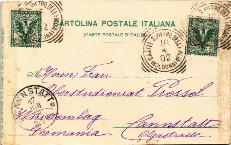 1902 Castel San Pietro Terme, Piazza V. Emanuele / square (glue marks) https://www.darabanth.com/hu/414-Gyorsarveres/414.0/Kepeslapok/Olaszorszag~1500042/1902-Castel-San-Pietro-Terme-Piazza-V-Emanuele-square-glue-marks~II2591434