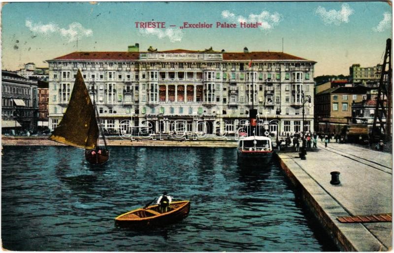 1912 Trieste, Trst; Excelsior Palace Hotel (fa) https://www.darabanth.com/hu/414-Gyorsarveres/414.0/Kepeslapok/Olaszorszag~1500042/1912-Trieste-Trst-Excelsior-Palace-Hotel-fa~II2591073