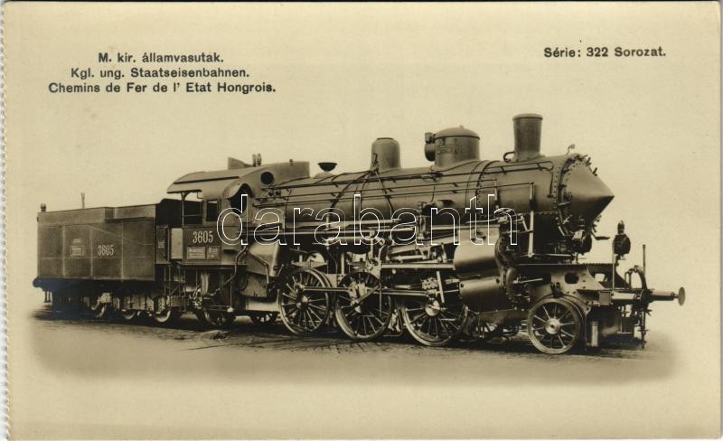 M. kir. államvasutak 322. sorozat gőzmozdonya / Hungarian State Railwa... https://www.darabanth.com/hu/414-Gyorsarveres/414.0/Kepeslapok/Vonat~1500089/M-kir-allamvasutak-322-sorozat-gozmozdonya-Hungarian-State-Railways-locomotive~II2173890