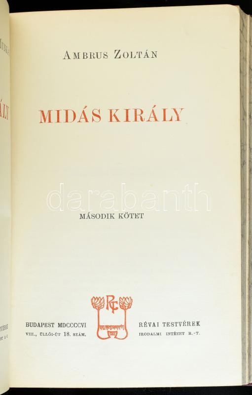 Ambrus Zoltán: Midás király.I-II. köt. Ambrus Zoltán Munkái I-II. [Egy... https://www.darabanth.com/hu/414-Gyorsarveres/414.0/Konyvek/Konyvek-Egyeb-ritkasagok~1000024/Ambrus-Zoltan-Midas-kiralyI-II-kot-Ambrus-Zoltan-Munkai-I-II-Egy-kotetben-Bp-1906-~II2542501