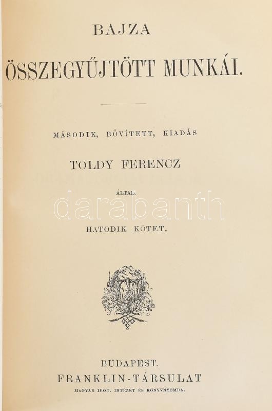 Bajza összegyűjtött munkái V-VI. köt. [Egykötetben.] Magyar Remekírók.... https://www.darabanth.com/hu/414-Gyorsarveres/414.0/Konyvek/Konyvek-Egyeb-ritkasagok~1000024/Bajza-osszegyujtott-munkai-V-VI-kot-Egykotetben-Magyar-Remekirok-Bp-en-Franklin-MC3~II2590236