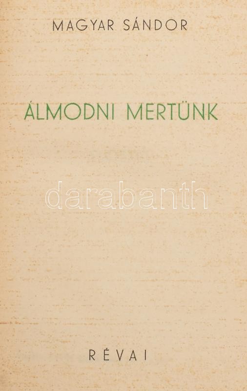 Bánhidy Antal: Pilóta lettem.; Magyar Sándor: Álmodni mertünk.; Svachulay Sándor: A természet aviatikusai.; Steff Tibor: Játék az éggel.; Antoine de Saint-Exupéry: Egyedül a felhők felett.; Amelia Earhart: Az utolsó út.; Anne M. Lindbergh: Zúg a szél.; Lucio D' Ambra: Szárnyas katonák.; Günther Plüschow: Ezüstkondor.; Valentino Tocci: Légi párbaj. Bp.,é.n.,Műegyetemi Sportrepülő Egyesület, (Révai-ny.) Kiadói egészvászon-kötések, kis kopásnyomokkal, de alapvetően jó állapotban.
