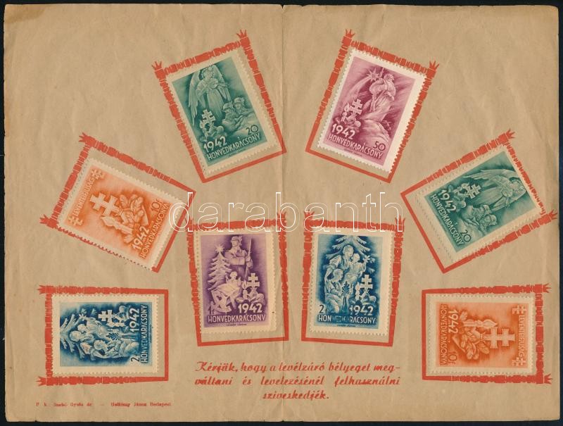 Leírás: 1942 Honvédkarácsony levélzárók emléklapon (korábban hajtva / folded)