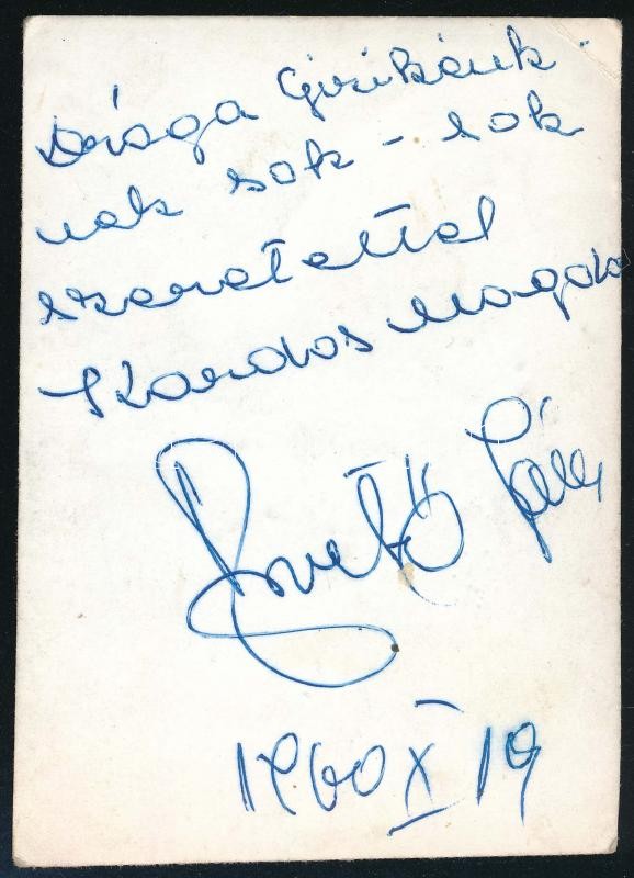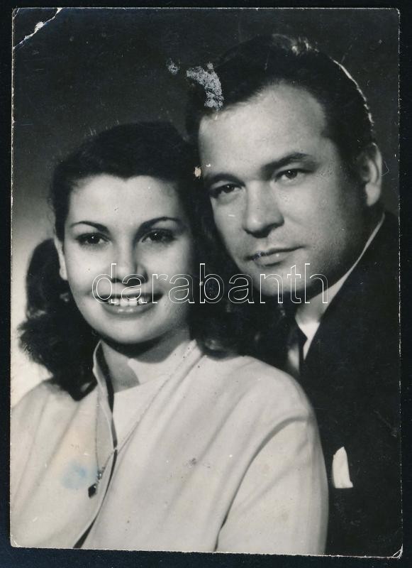 Leírás: 1960 Kardos Magda (1927-2003) színésznő és férje, Borvető János (1922- ) színész autográf aláírása őket ábrázoló fotón, 9x6,5 cm