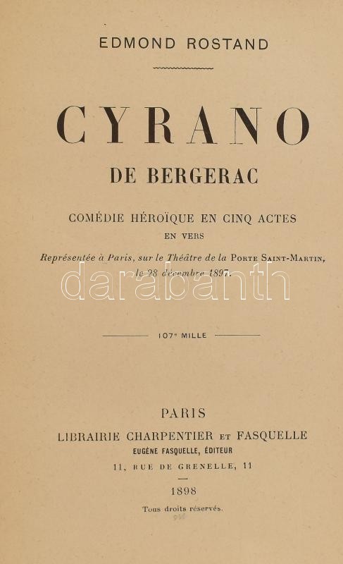 Leírás: báró Hazai Samu (1851-1942) honvédelmi miniszter beragasztott aláírása egy francia nyelvű Edmond Rostand: Cyrano de Bergerac c. könyvbe ragasztva.