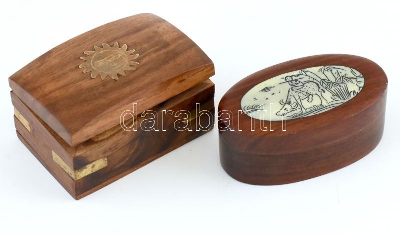 Leírás: Fa dobozkák: réz napocskás, gyöngyház díszítéses. 7 cm, 8 cm
