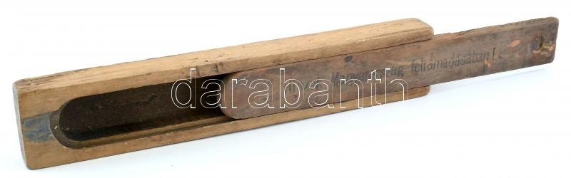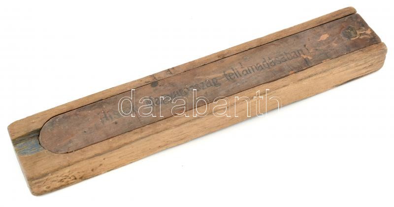 Leírás: Fa toll tartó, irredenta felirattal: "Hiszek Magyarország feltámadásában", kopott, sérült, h:23,5cm