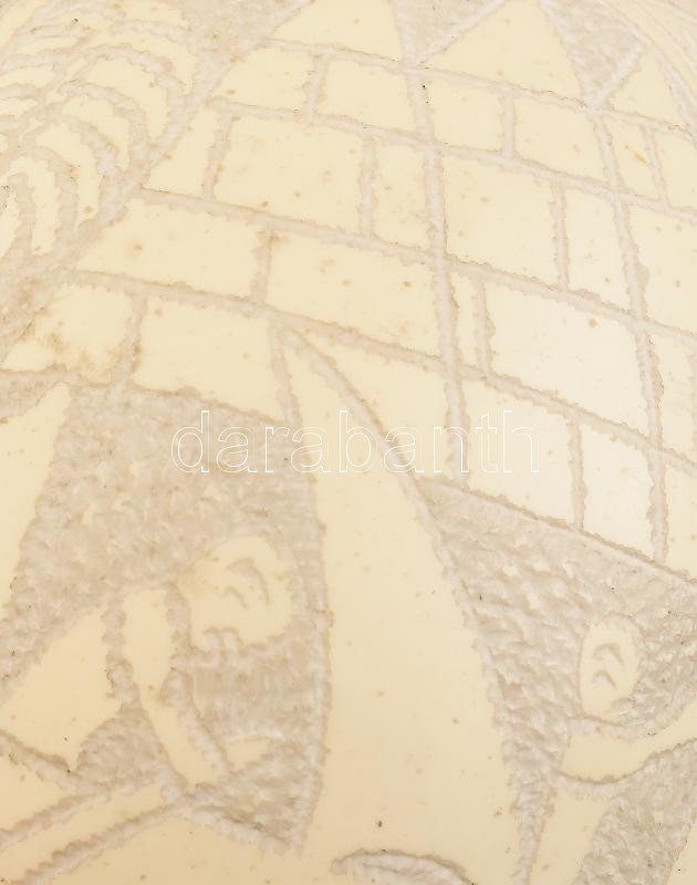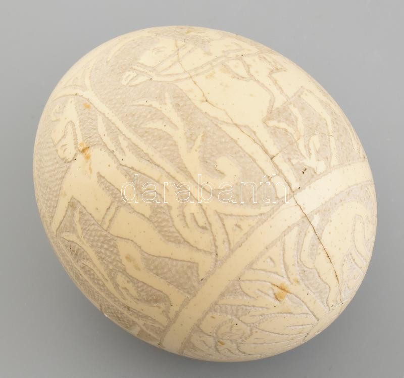 Leírás: Faragott strucc tojás, repedt, lukas m:15cm