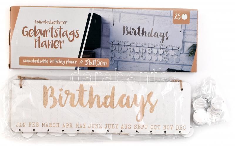 Leírás: Születésnap-tervező fa tábla, eredeti dobozában, h: 40 cm