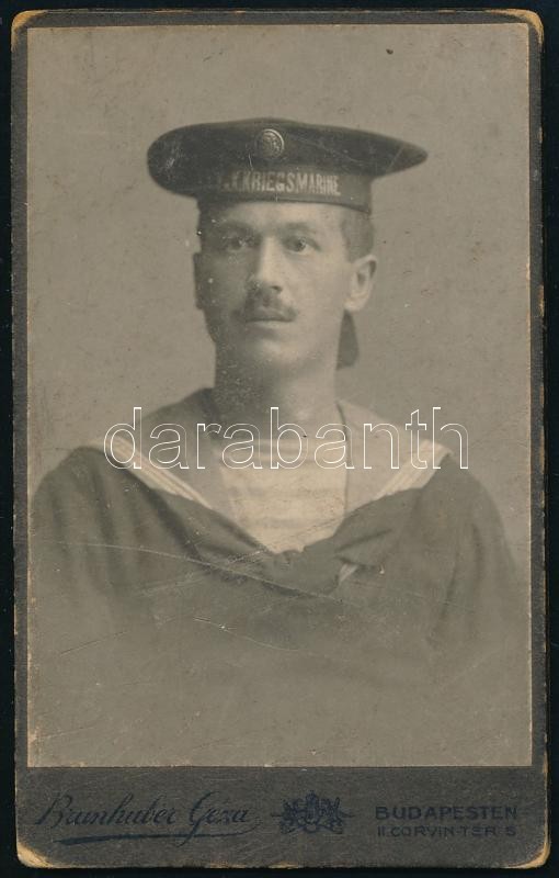 cca. 1900 Osztrák-Magyar Monarchia, a Császári és Királyi Haditengerészet egyik tengérész tisztje. Brunhuber Géza műterme, Budapest. Fotó, kopott, 10,5x6,5cm