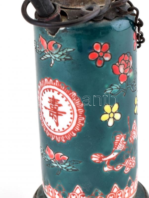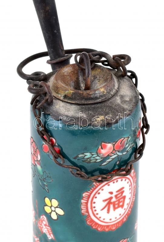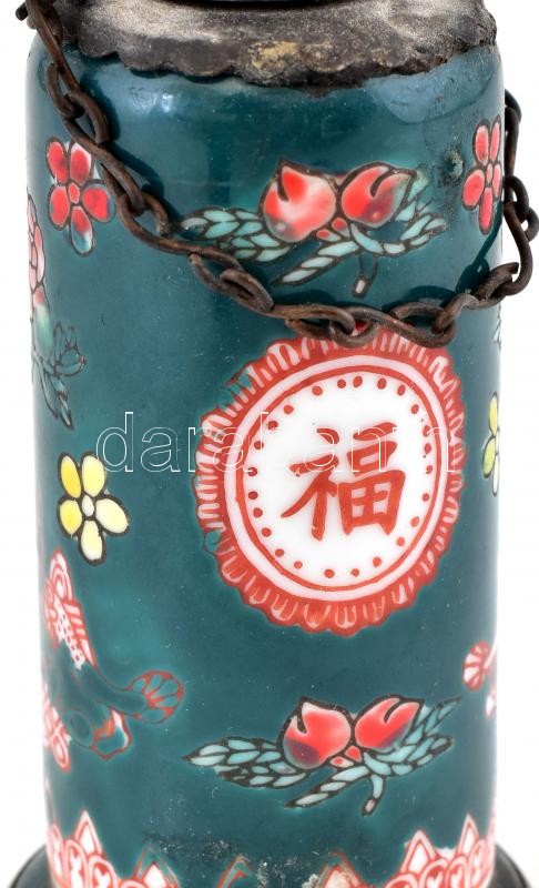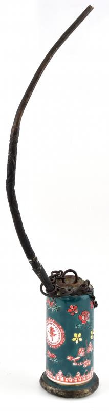 Leírás: Ópiumpipa. kínai jelzett porcelán, fém szerelékkel. Kézzel festett, m: 11-17 cm / Chinese porcelain opium pipe. Hand painted, marked