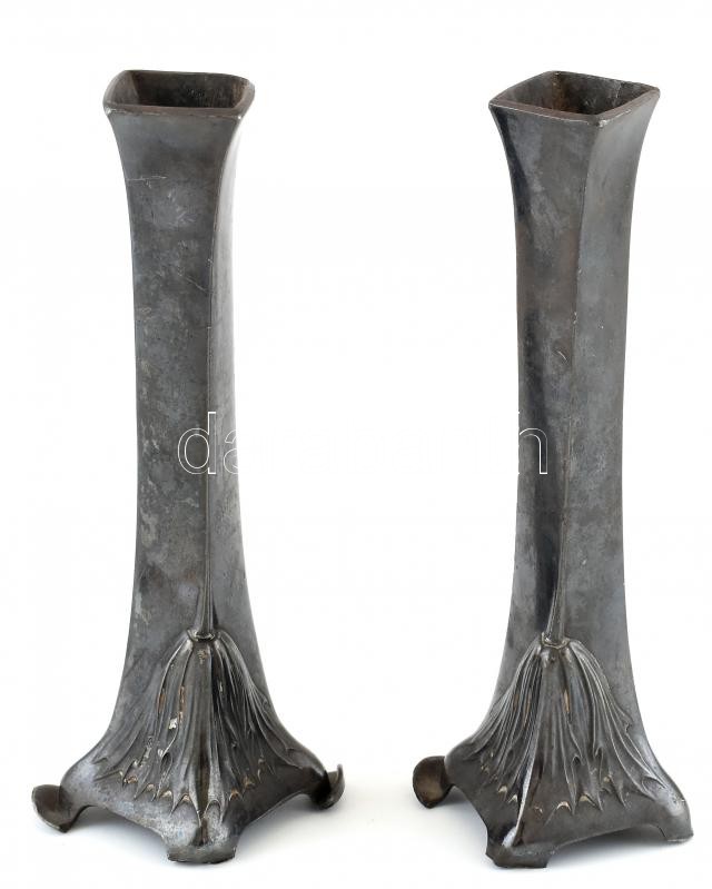 Leírás: Szecessziós gyertyatartó pár, jelzett, Argentor, 1910 körül, több helyen sérült, belseje üreges, m:20cm
