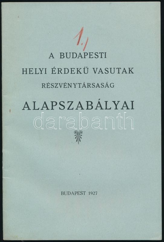 1927 Bp., A Budapesti Helyi Érdekű vasutak Részvénytársaság alapszabál... https://www.darabanth.com/hu/414-Gyorsarveres/414.0/Mutargy-papirregiseg-egyeb/Nyomtatvanyok~1000005/1927-Bp-A-Budapesti-Helyi-Erdeku-vasutak-Reszvenytarsasag-alapszabalyai-28p~II2592098