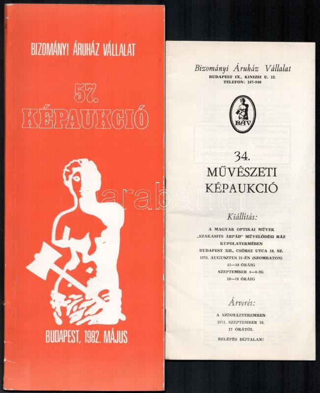 1974-1995 4 db árverési katalógus: BÁV 57. Képaukció, 34. és 87. Művés... https://www.darabanth.com/hu/414-Gyorsarveres/414.0/Mutargy-papirregiseg-egyeb/Nyomtatvanyok~1000005/1974-1995-4-db-arveresi-katalogus-BAV-57-Kepaukcio-34-es-87-Muveszeti-kepaukcio-plus-So~II2592343