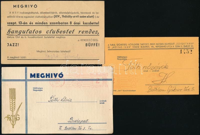 Leírás: cca 1930 3 db érdekes meghívó: Turul szövetség Zrínyi bajtársi egyesület, Héjjas István törzs + Széchenyi gazdakör, MÁV segédtisztek