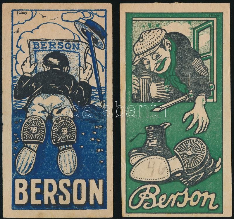 Berson cipősarok számolócédula, 2 db, egyik Földes Imre (1881-1948) gr... https://www.darabanth.com/hu/414-Gyorsarveres/414.0/Mutargy-papirregiseg-egyeb/Reklam~500022/Berson-ciposarok-szamolocedula-2-db-egyik-Foldes-Imre-1881-1948-grafikaja~II2595170