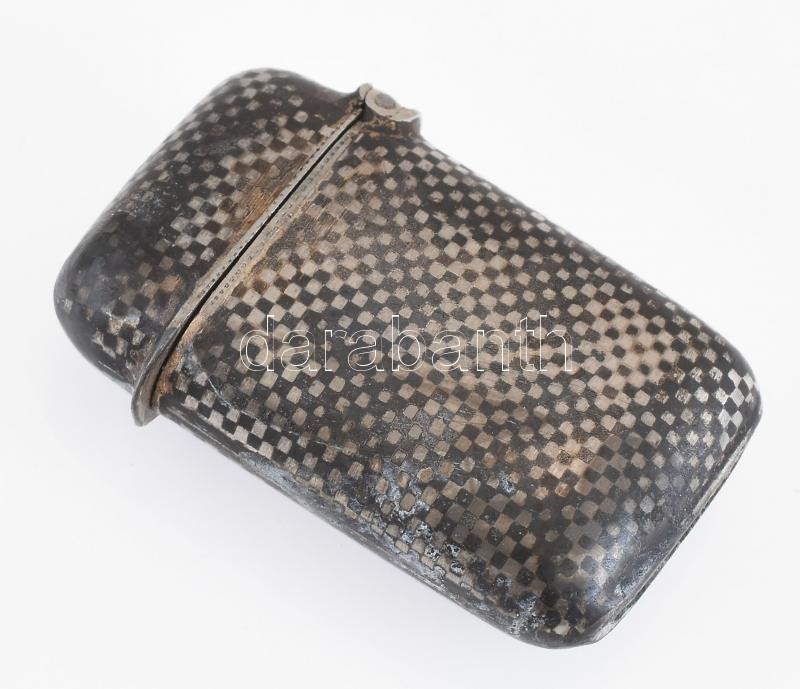 Leírás: Ezüst (Ag) gyufatartó, niellózott, jelzés nélkül, 4,5x3cm, nettó: 22g