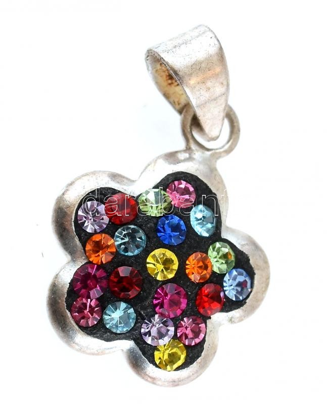 Leírás: Ezüst (Ag) virágos medál kövekkel gazdagon kirakva, jelzett, h: 1 cm, bruttó: 1,1 g