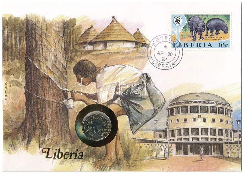 Libéria 1977. 5c felbélyegzett borítékban, bélyegzéssel, német nyelvű leírással T:1 Libéria 1977. 5 Cents in envelope with stamp and cancellation, with German description C:UNC