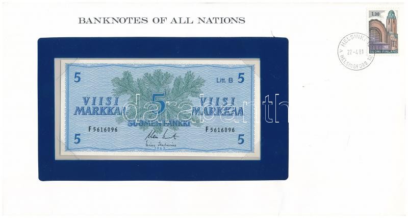 Finland 1963. 5 Markkaa "F5616096" in envelope with stamp C:UNC small tears on the envelope