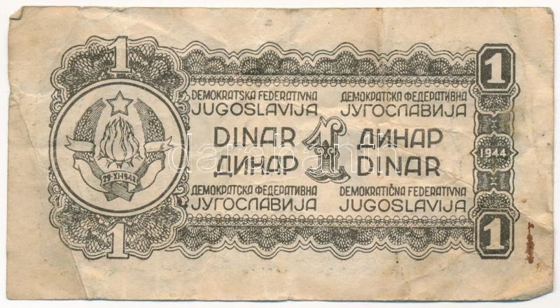 Krause P#48 https://www.darabanth.com/hu/414-Gyorsarveres/414.0/Numizmatika/Kulfoldi-bankjegyek~2000012/Jugoszlavia-1944-1D-TIII--Yugoslavia-1944-1-Dinar-CF-Krause-P2348~II2585969