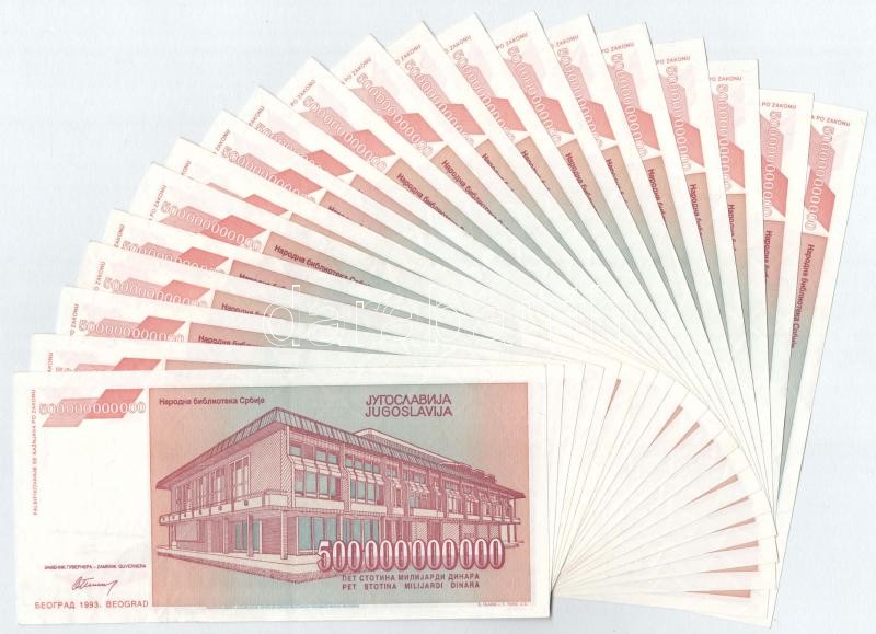 Yugoslavia 1993. 500.000.000.000 Dinara (20x) with 7pcs of consecutive serials, consecutive pairs and close serials C:UNC,AU Krause P#137