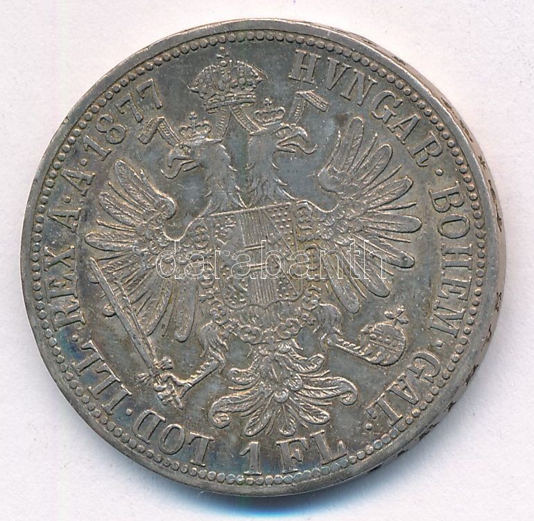 Austria 18... https://www.darabanth.com/hu/414-Gyorsarveres/414.0/Numizmatika/Kulfoldi-fem-es-ezustpenzek~2000013/Ausztria-1877-1Fl-Ag-Ferenc-Jozsef-T2-patina-Austria-1877-1-Florin-Ag-Franz-Joseph-CXF-pat~II2593434